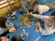 W ramach obchodów Światowego Dnia Gier Planszowych (10.10) uczniowie spotykali się na sali gimnastycznej i w klasach, aby rozgrywać pojedynki i gry kooperacyjne.